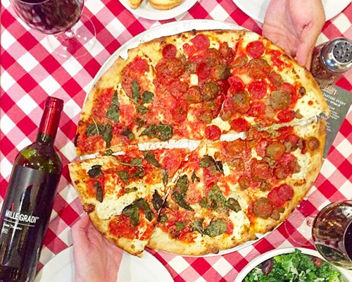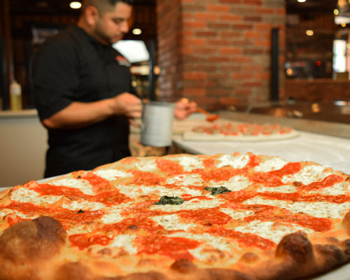 Our Grimaldi’s Pizzeria is in the shops of Highland Village in the Dallas metro area of Texas. We are located across the street from the Chinn Chapel Soccer Complex and 407 intersection, next to Décor to Your Door. Convenient parking is available in the back of our building, with additional parking in front and on west side. We have a large covered outdoor patio with heaters and fans available to make your visit comfortable. We also feature both indoor and outdoor bar seating. We offer online and take-out ordering if you prefer to order early or dine at home. Bring the whole family for great food and good times at Grimaldi’s Pizzeria at Highland Village.