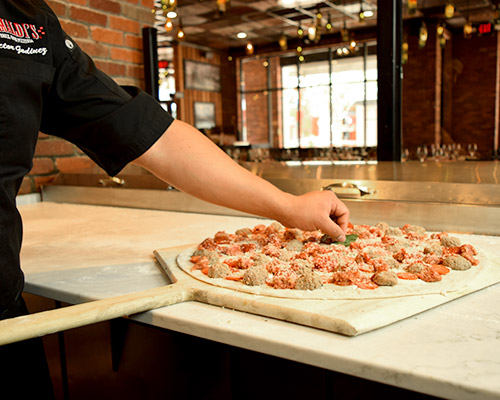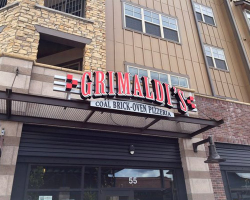 Our Grimaldi’s Pizzeria in the heart of Flagstaff, Arizona is in the luxurious Aspen Place at the Sawmill. Featuring views of the San Francisco Peaks and Mount Elden, we offer a large patio and a dual sided bar with indoor and outdoor seating. Our beautiful restaurant has wine bottle chandeliers and a genuine feel of New York with pictures and music making every visit memorable. Located under the Aspen Village apartments, enjoy shopping at stores such as Whole Foods, Orange Theory Fitness, and REI after your meal. We pride ourselves on being a staple of the Flagstaff community and providing a one of a kind experience both for visitors and our locals. If you’re a new in town or a longtime fan, please stop by for some great food, and an even better time!