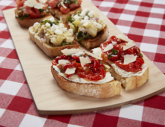 Select 3 Options To Personalize Your Platter: Marinated Mushroom & Roasted Red Pepper, Classic Tomato & Basil, Marinated Artichoke, Roasted Red Pepper & Ricotta.
