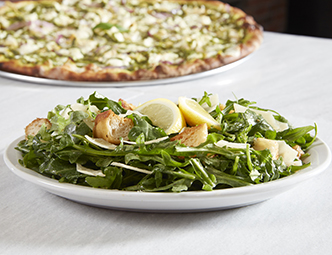Arugula, shaved Italian cheese, coal oven baked croutons and lemon vinaigrette garnished with lemon wedges.