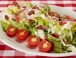 Romaine Lettuce, Bleu Cheese Dressing, Bacon, Red Onions, Gorgonzola Crumbles and Cherry Tomatoes.