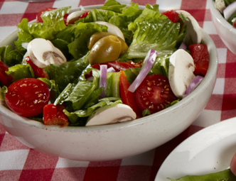 Romaine Lettuce, Red Onion, Cherry Tomatoes, Oven Roasted Sweet Red Peppers, Mushrooms, Green Olives, Vinaigrette Dressing.