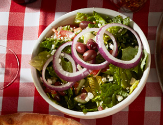 Romaine Lettuce, Cucumbers, Tomatoes, Kalamata Olives, Feta Cheese, Red Onion, Vinaigrette Dressing.